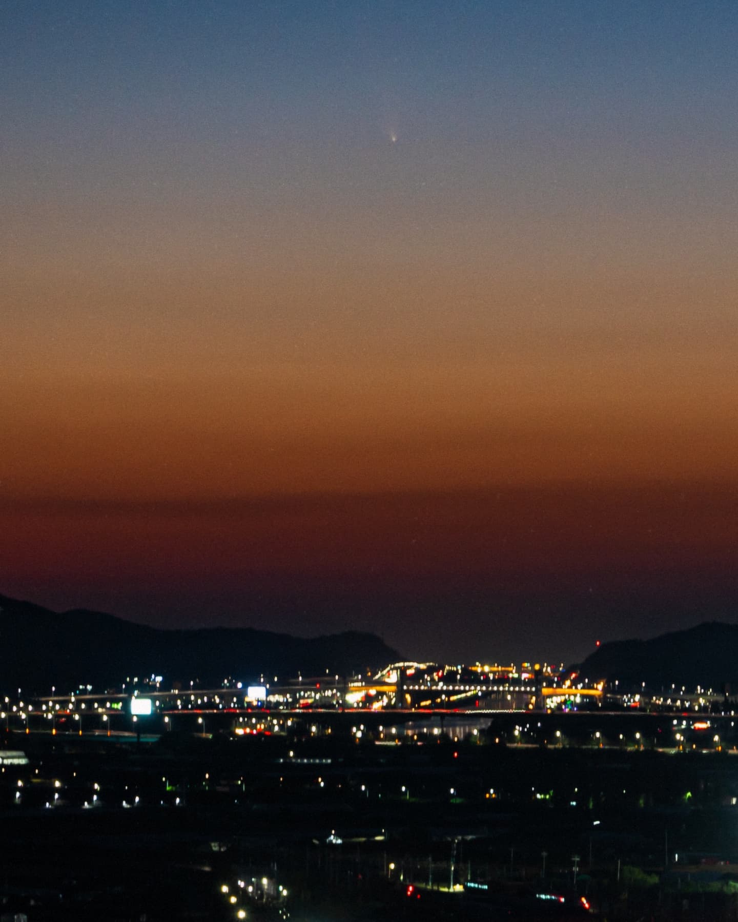 시야가 좋지않고 꼬리가 많이 약해진 모습이었지만 처음 눈으로 보는 혜성은 경이로웠습니다.